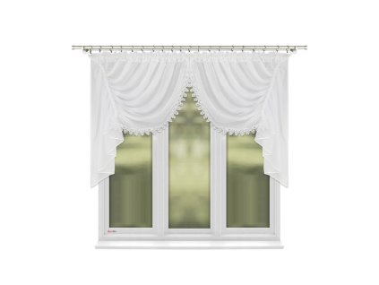 Šíře záclony je 300 cm a výška 140 cm. Dá se nařasit. Rozměry jsou uvedeny v nenařaseném stavu, výška záclony je měřena v nejdelším místě.