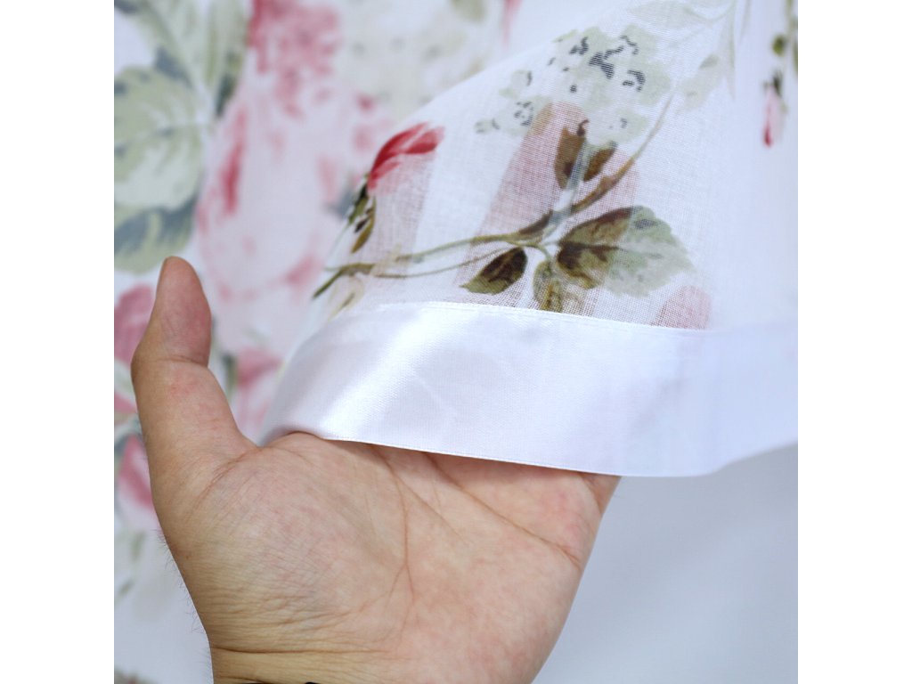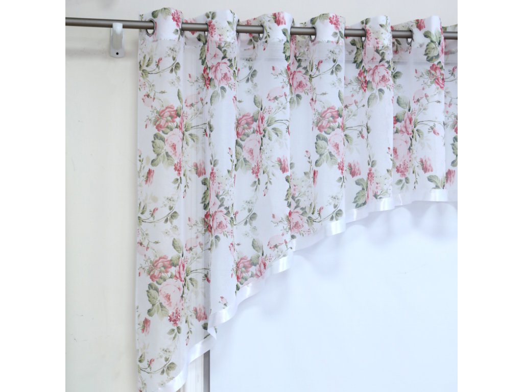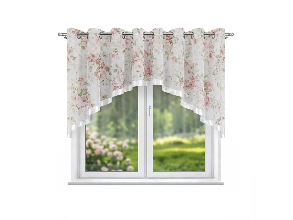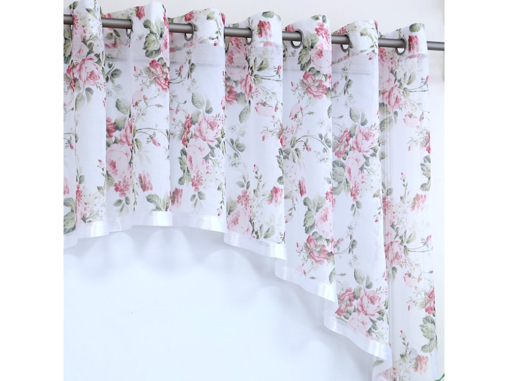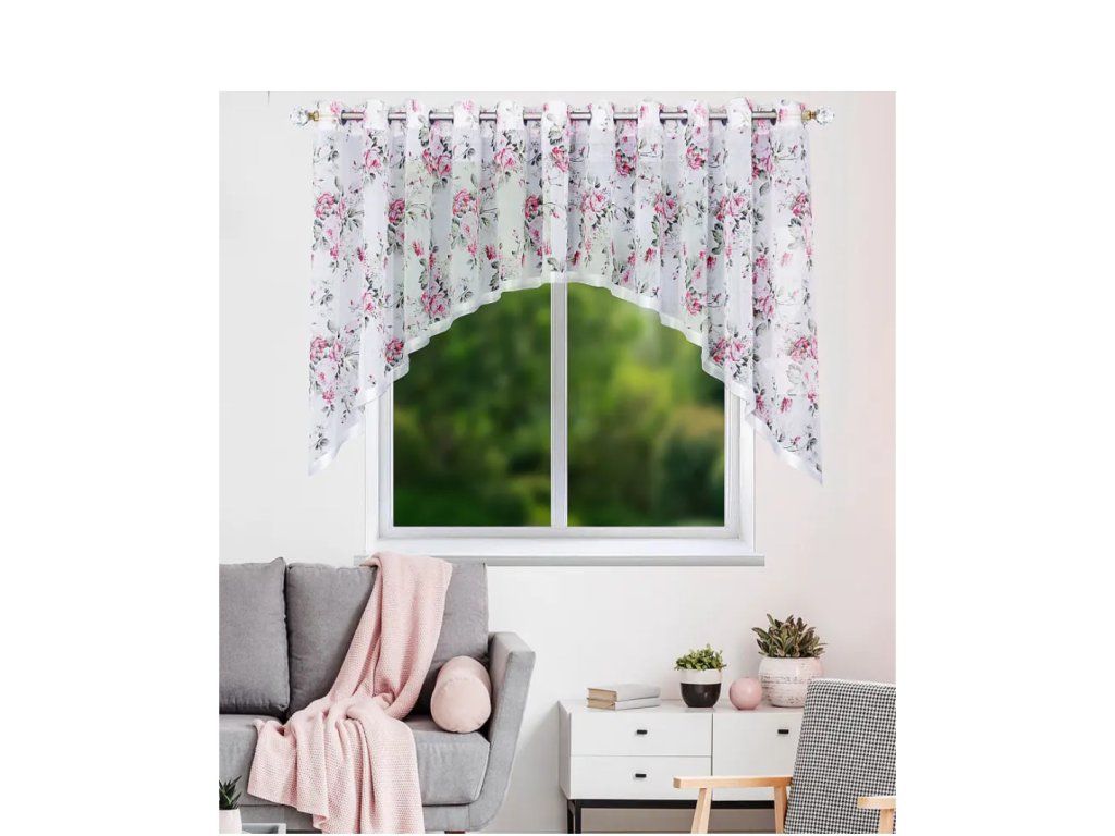 Dekorační krátká záclona s jemným květinovým vzorem, který se hodí k interiéru každého druhu. Díky klasickému obloukovému střihu záclona krásně splývá přes okno, zdůrazňuje jeho tvar a dodává místnosti nádech lehkosti. Je to perfektní volba do obývacího pokoje, jídelny, kuchyně nebo ložnice – kamkoli, kde chcete spojit funkčnost, styl a útulnou atmosféru.