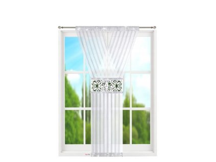 Panel L 850 je vyroben z bílého voálu, který má zajímavé uspořádání do tvaru "V" ve středové části okna. Panel je kombinaci jednoduchého voálu, prolamovaného vzoru, který spojuje dvě části voálové látky a pruhů čtvercové zirkonie. Rozměry panelu jsou 120 × 150 cm. A díky všité univerzální pásce jej lze zavěsit na různé typy záclonových tyčí nebo na žabky. Prolamované panely mohou být zajímavou náhradou tradičních závěsů. Model Mandy zakryje okno stejně dobře jako typický závěs. Bílý dekorativní panel lze samozřejmě úspěšně kombinovat s tradičními závěsy.