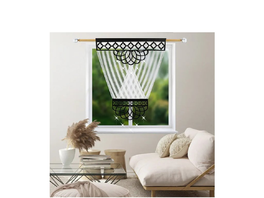 Panel L 850 je vyroben z bílého voálu, který má zajímavé uspořádání do tvaru "V" ve středové části okna. Panel je kombinaci jednoduchého voálu, prolamovaného vzoru, který spojuje dvě části voálové látky a pruhů čtvercové zirkonie. Rozměry panelu jsou 120 × 150 cm. A díky všité univerzální pásce jej lze zavěsit na různé typy záclonových tyčí nebo na žabky. Prolamované panely mohou být zajímavou náhradou tradičních závěsů. Model Mandy zakryje okno stejně dobře jako typický závěs. Bílý dekorativní panel lze samozřejmě úspěšně kombinovat s tradičními závěsy.