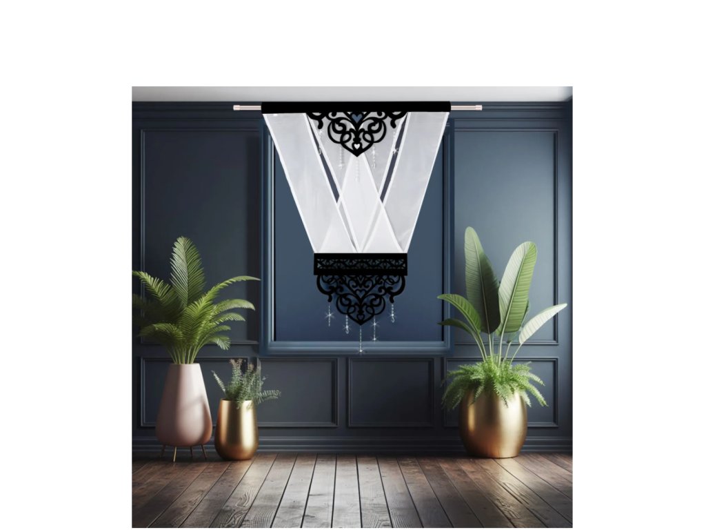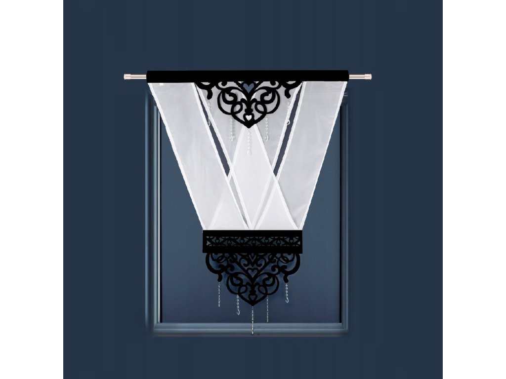 Panel L 627 je vyroben z bílého voálu, který má zajímavé uspořádání do tvaru "V" ve středové části okna. Panel je kombinaci jednoduchého voálu, prolamovaného vzoru, který spojuje dvě části voálové látky a pruhů čtvercové zirkonie. Rozměry panelu jsou 120 × 160 cm. A díky všité univerzální pásce jej lze zavěsit na různé typy záclonových tyčí nebo na žabky. Prolamované panely mohou být zajímavou náhradou tradičních závěsů. Model Mandy zakryje okno stejně dobře jako typický závěs. Bílý dekorativní panel lze samozřejmě úspěšně kombinovat s tradičními závěsy.