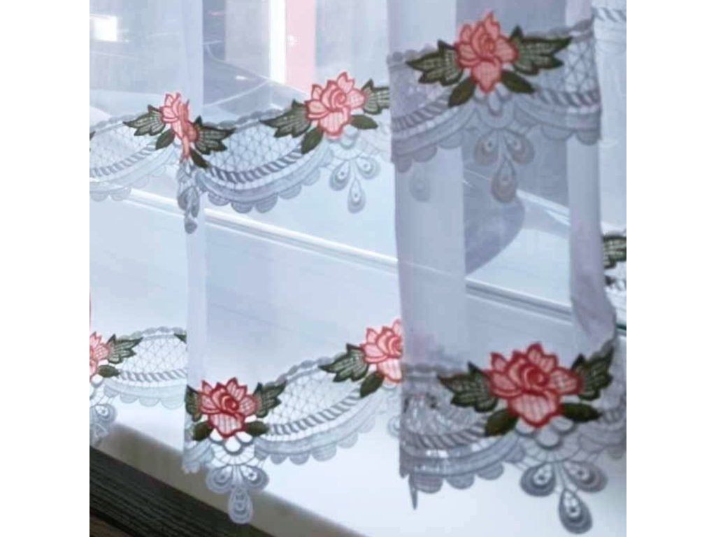 Šíře záclony je 400 cm a výška 100 cm. Dá se nařasit. Rozměry jsou uvedeny v nenařaseném stavu, výška záclony je měřena v nejdelším místě.