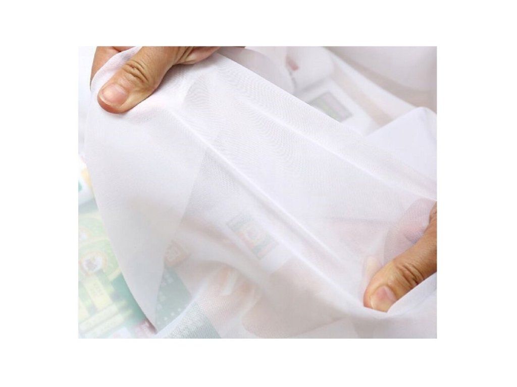 Šíře záclony je 400 cm a výška 150 cm (tolerance + /- 5 cm). Dá se nařasit. Rozměry jsou uvedeny v nenařaseném stavu, výška záclony je měřena v nejdelším místě.