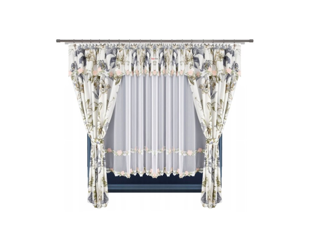 Šíře záclony je 400cm a výška 160 cm. Dá se nařasit. Rozměry jsou uvedeny v nenařaseném stavu, výška záclony je měřena v nejdelším místě.