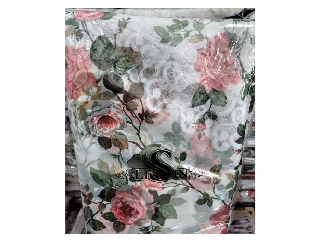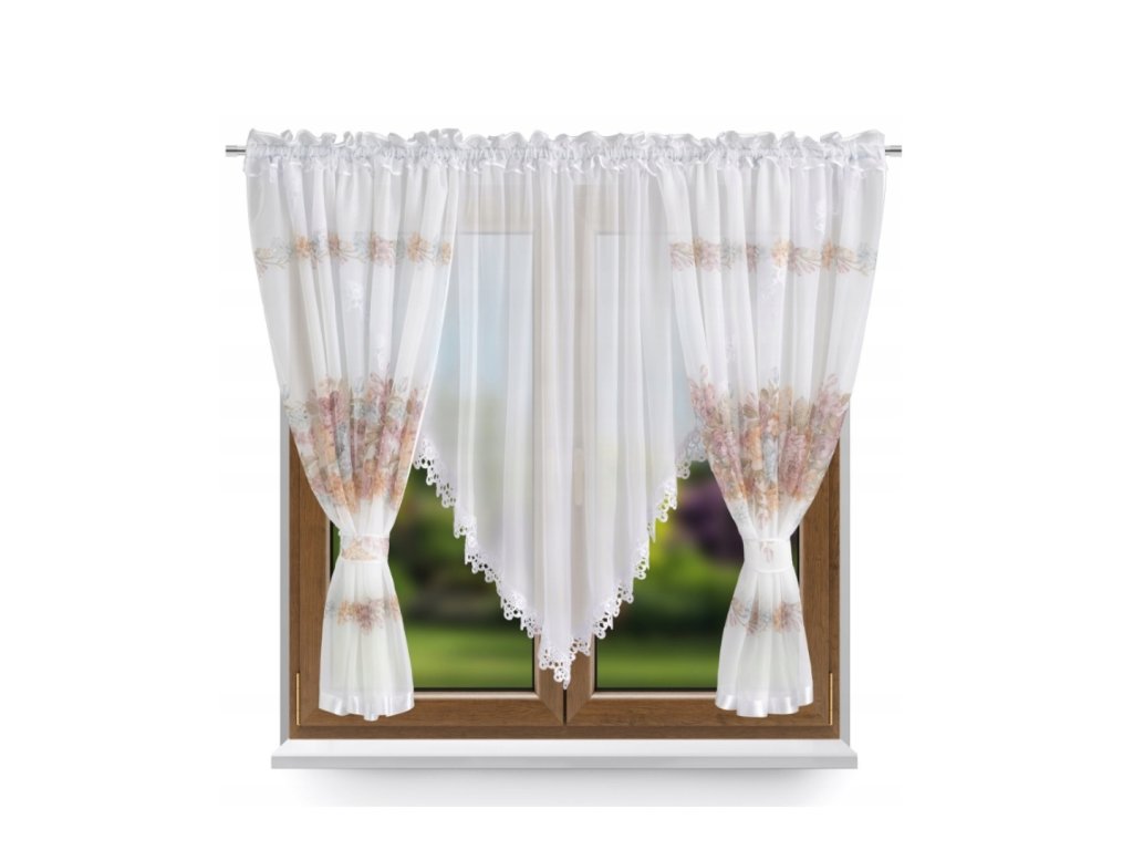 Nádherná hotová kusová záclona s květinamy. Záclona je po okraji ozdobená lesklou lemovkou. Na horním okraji je našitá řasící pásce, pomocí které můžete upravovat šířku záclony a tunýlkem na tyč o průměru 3,5 cm.