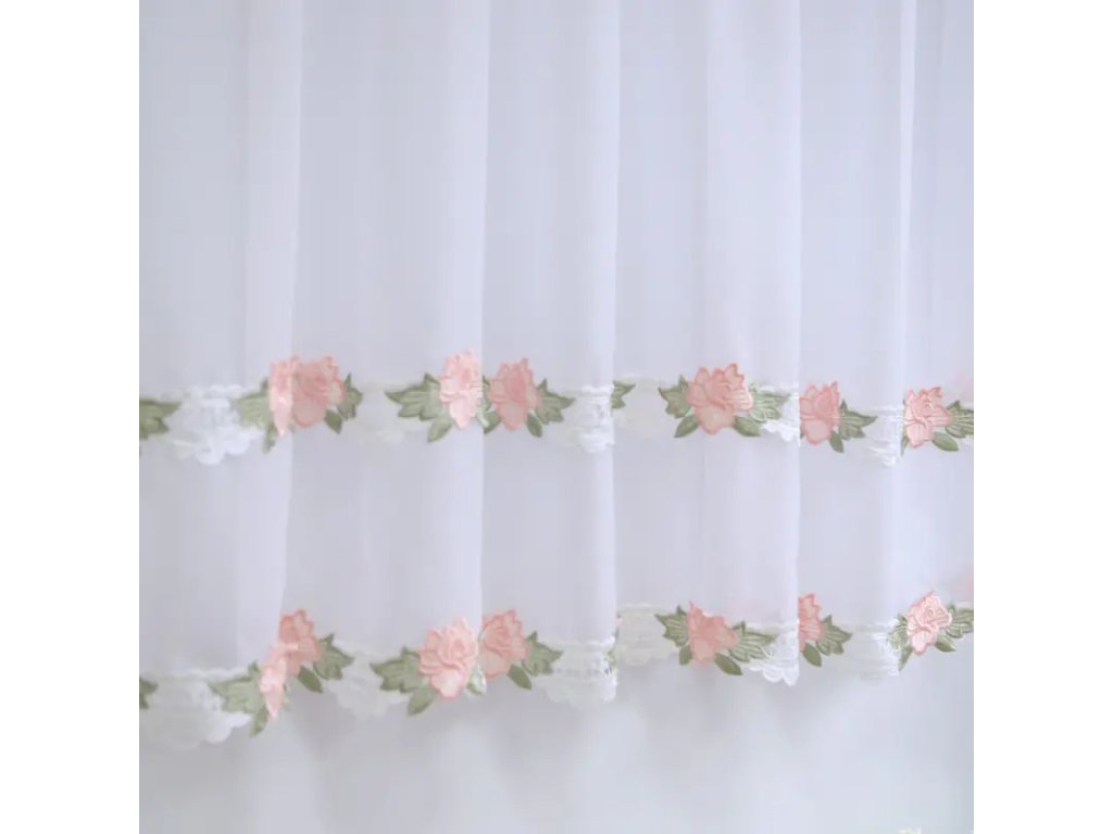 Luxusní hotová kusová záclona Tulipány. Nahoře je opatřena řasící stuhou díky které můžete měnit šířku záclony a tunýlkem na tyč o průměru 3,5 cm. Je též přizpůsobena k pověšení na háčky nebo žabky. Dá se nařasit.