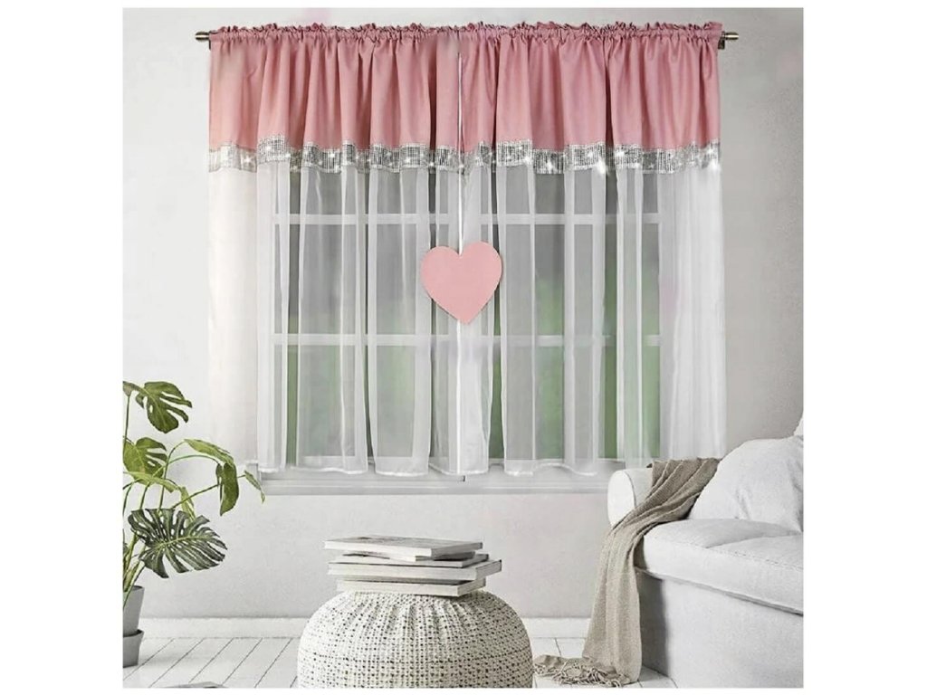 Hotová záclona s řasící páskou Srdíčka bílá/růžová 400x145 cm
