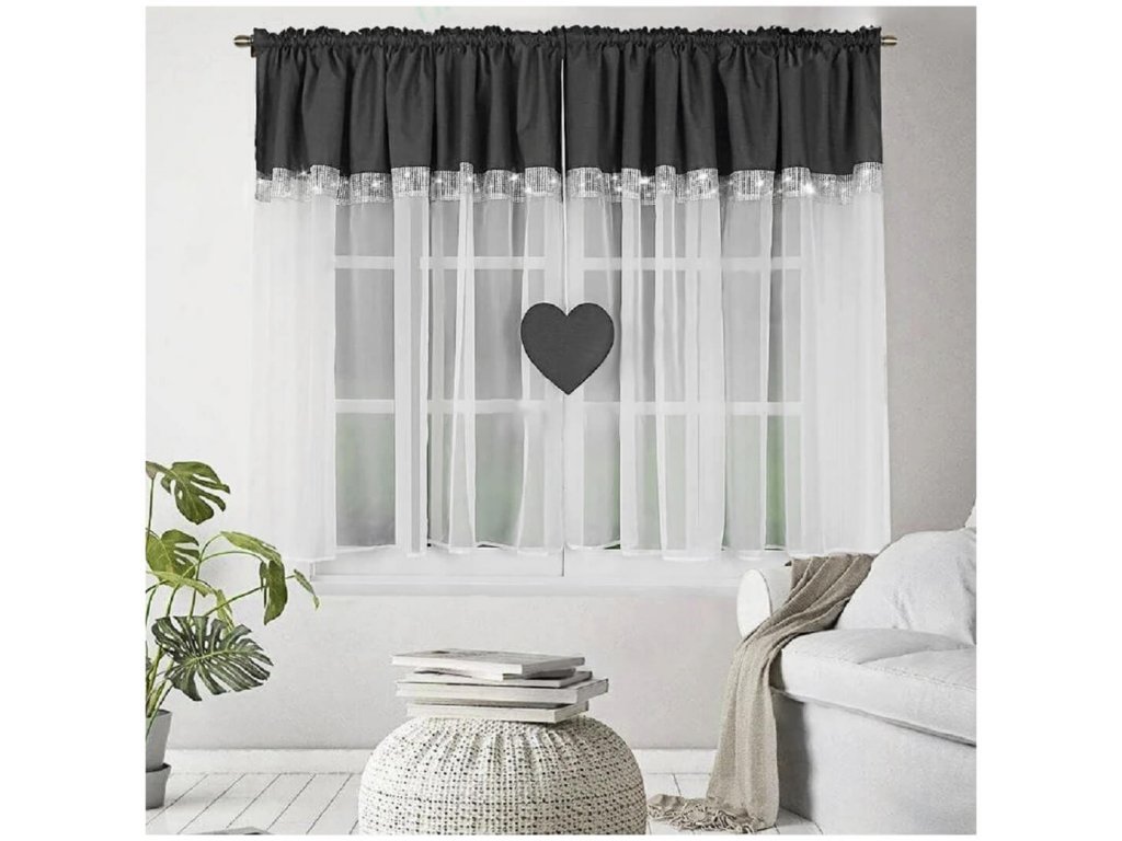 Hotová záclona s řasící páskou Srdíčka bílá/šedá 400x145 cm