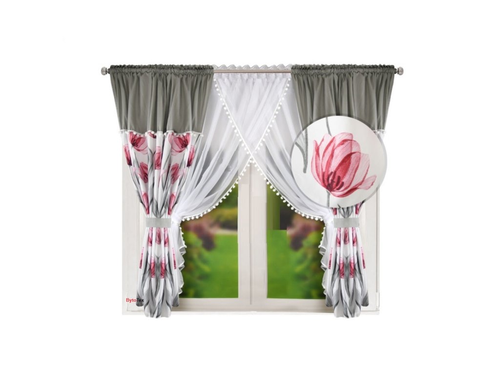 Sada L 586 lemovaná bílou krajkou osloví každého, kdo hledá zajímavou dekoraci na okno. Skládá se ze záclony a závěsů. Sada může být zavěšena jak v kuchyni, jídelně, obývacím pokoji, tak i v ložnici. Sada se skládá ze tří částí. Záclona je ušitá do tvaru oblouku v rozměru 400x155 cm. Dva závěsy jsou ušité na jedné pásce s ozdobným vzorem v rozměru 400 x 155 cm. Nahoře je všita páska, díky které bude možné záclony navlékat na garnýž s žabkami nebo je nasouvat na trubkovou garnýž.