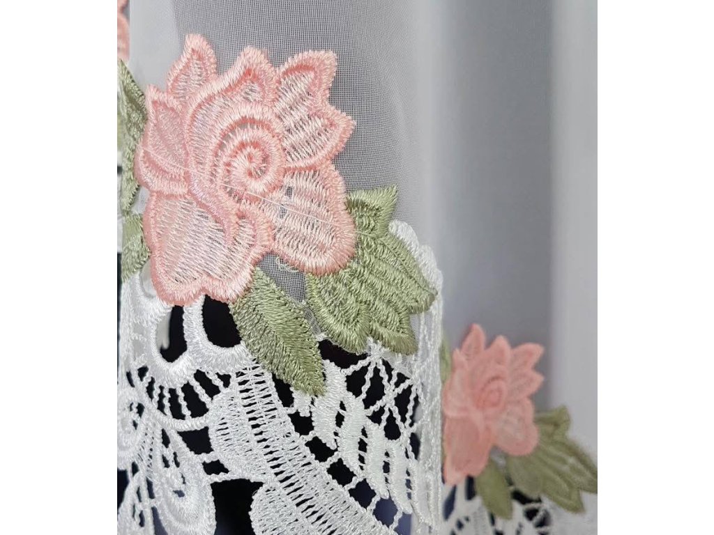 Hotová záclona L 294 bílá s květinami, 300x160 cm