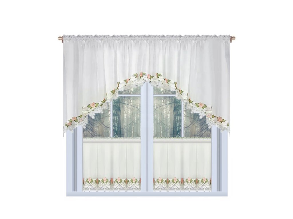 Tento elegantní set se skládá z 3 částí. Tento set efektně ozdobí okno v kuchyni, ložnici, jídelně nebo dětském pokoji. Vytvoří útulný a nadčasový design, oživí prostor v jakémkoliv stylu. Bílý voál rozjasní místnost a vnese do interiéru teplou energii.