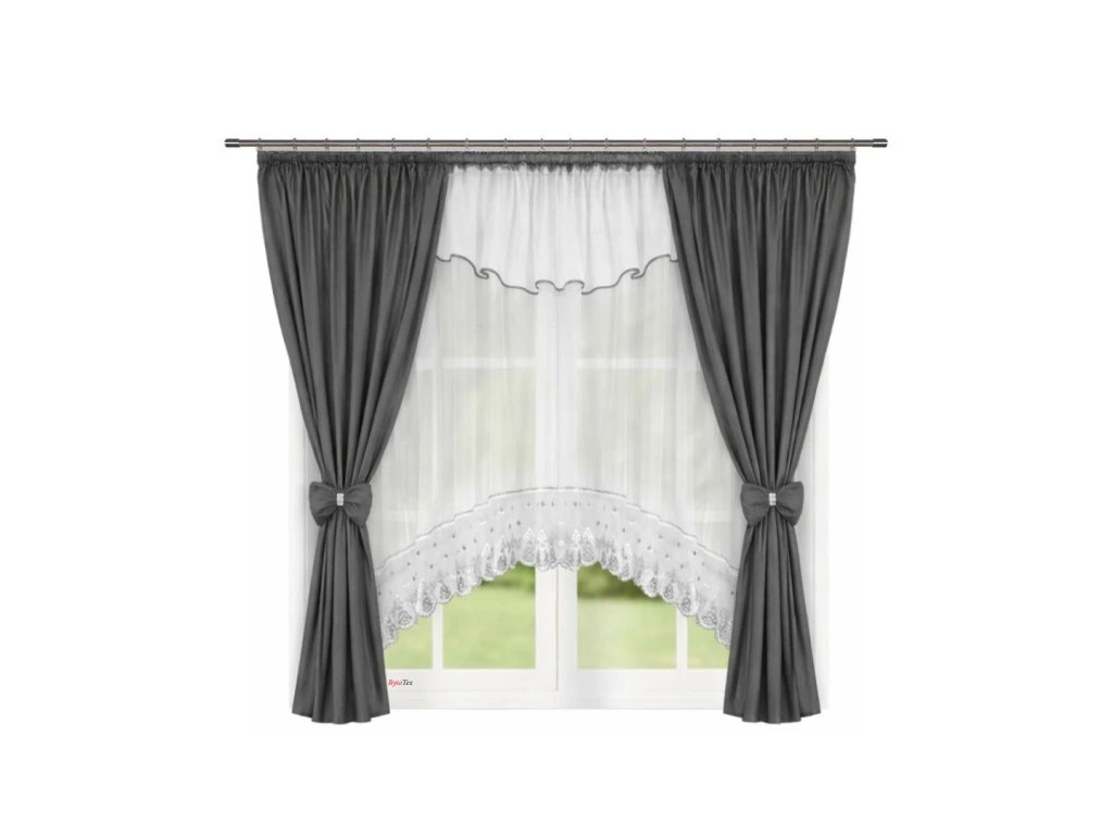 Dekorační sada záclon se závěsem L 595 šedá/bílá 400x160 cm