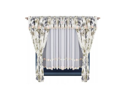 Šíře záclony je 400cm a výška 160 cm. Dá se nařasit. Rozměry jsou uvedeny v nenařaseném stavu, výška záclony je měřena v nejdelším místě.