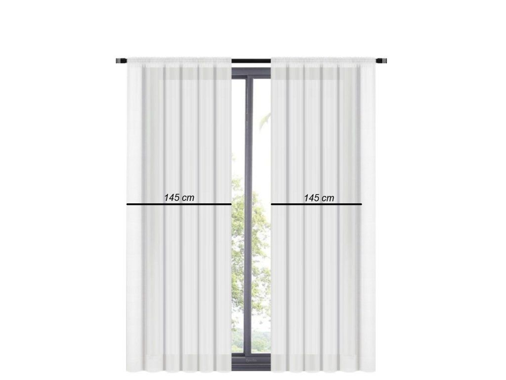 Šíře záclony je 145 cm a výška 250 cm.