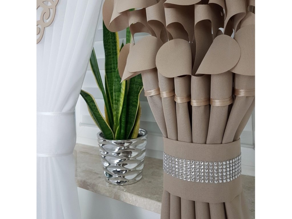 Sada závěsů s bílými voálovými záclonami ozdobenými prolamovanými přívěsky. Dohromady tvoří krásnou dekoraci, která se hodí do dětského pokoje, ale i obývacího pokoje nebo ložnice. Sada LILA je dostupná v různých barvách. Sada se skládá ze tří částí: záclony a dvou závěsů. Pověšením na záclonovou tyč již nebudou potřeba žádné další dekorace.