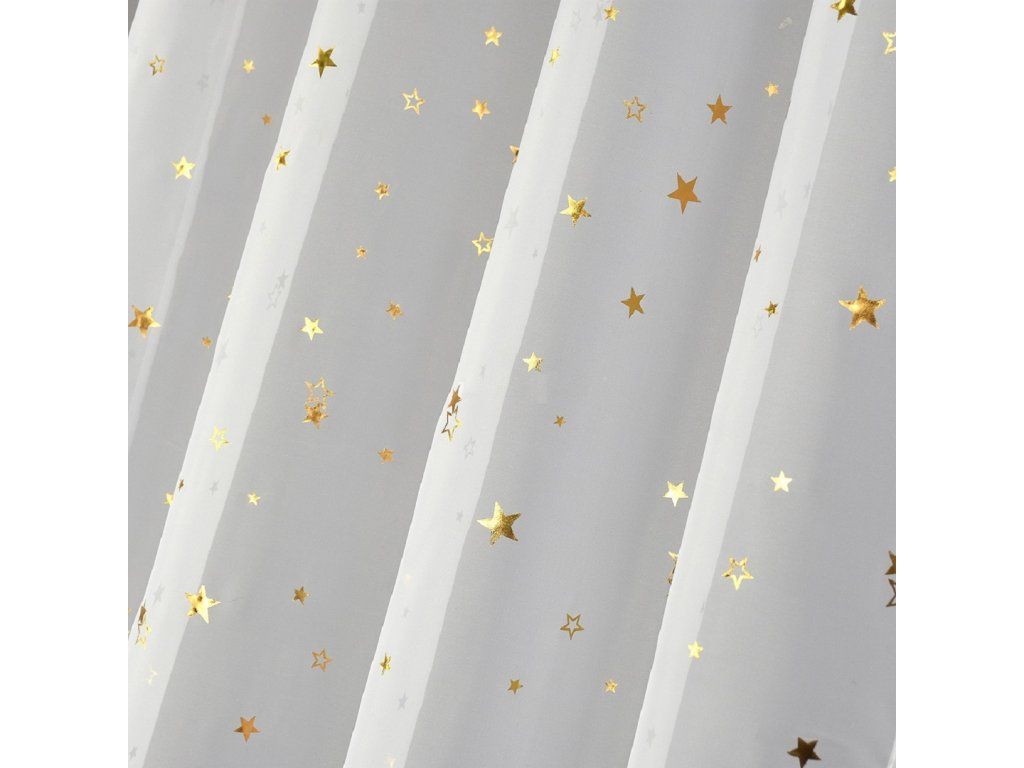 Hotový dvoudílný závěs z jemné bílé voile látky. Zdobené motivem zlaté hvězdy. Spodní a boční okraje jsou lemované. Rozměry 2x 145 x 250 cm, teplota praní do 30°C.