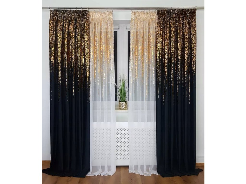 Sametový závěs Kamila 140x250 cm, černý/zlatý(cena za 1 kus)
