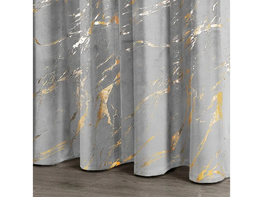 Sametový závěs na pásce L 786 šedý/zlatý, 140x250 cm (cena za 1 kus)